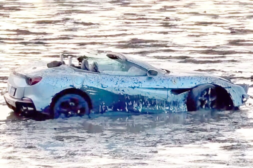 フェラーリ・ポルトフィーノが飲酒運転で泥沼に転落し、修復不可能な大破を遂げた事故が発生。