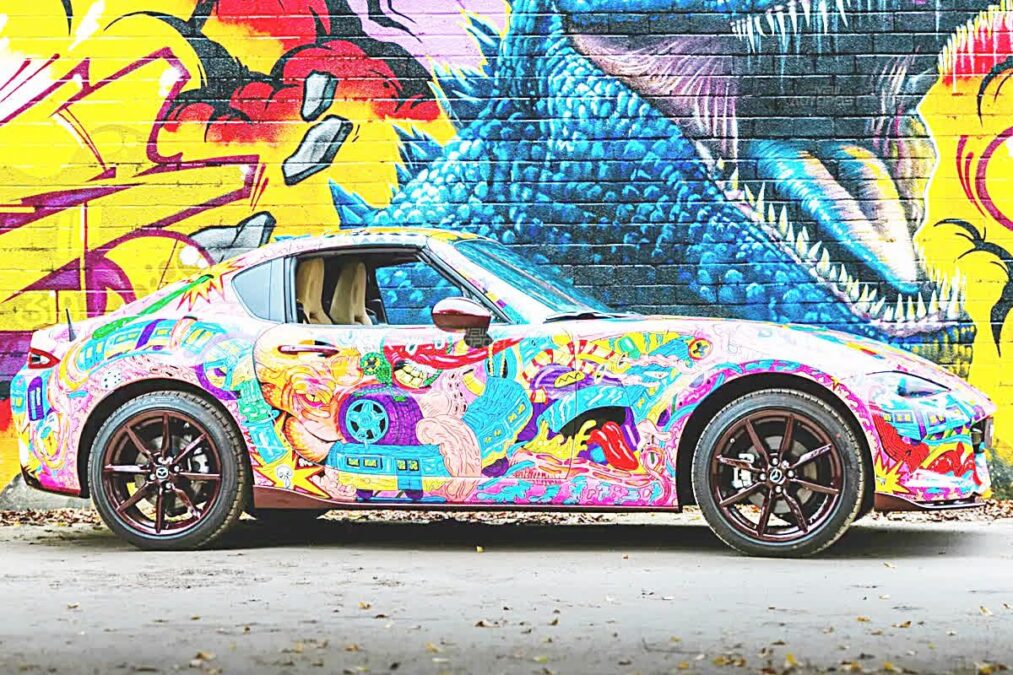 マツダ MX-5、まさかの「歌舞伎タウン」仕様が登場!ゴジラから龍まで和モチーフ満載の蛍光アート