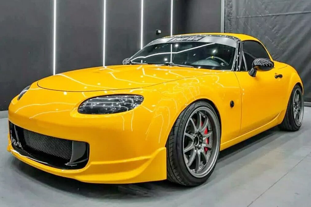 3代目マツダ・ロードスターがホンダS2000風バンパーを装着し、個性的なデザインと性能を進化させた。