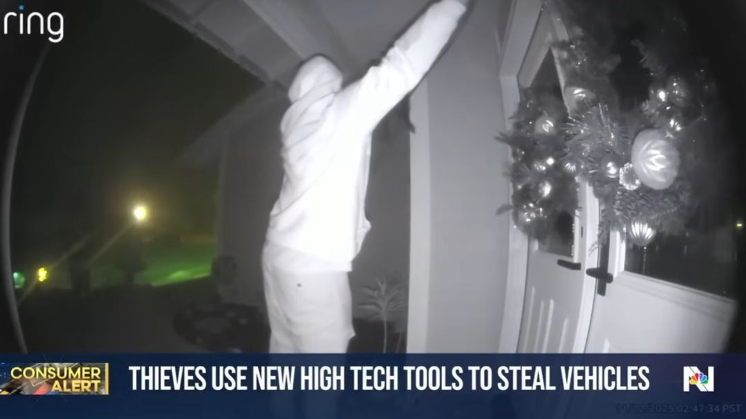 【引用:NBC】米カリフォルニアでは、スマートキー(key fob)の電波を外部から傍受して高級車を解錠・始動させるリレー式盗難が急増している。犯行者は住宅の外に立ちながらアンテナ型装置で家の中のキー信号を拾い、車両側に送信することで、実際のキーに触れずにエンジンを始動してそのまま走り去る。警察は「鍵を壊す必要すらなく、接触せずに盗める」として、従来型の盗難とは異なる高度化した手口に警戒を呼びかけている。