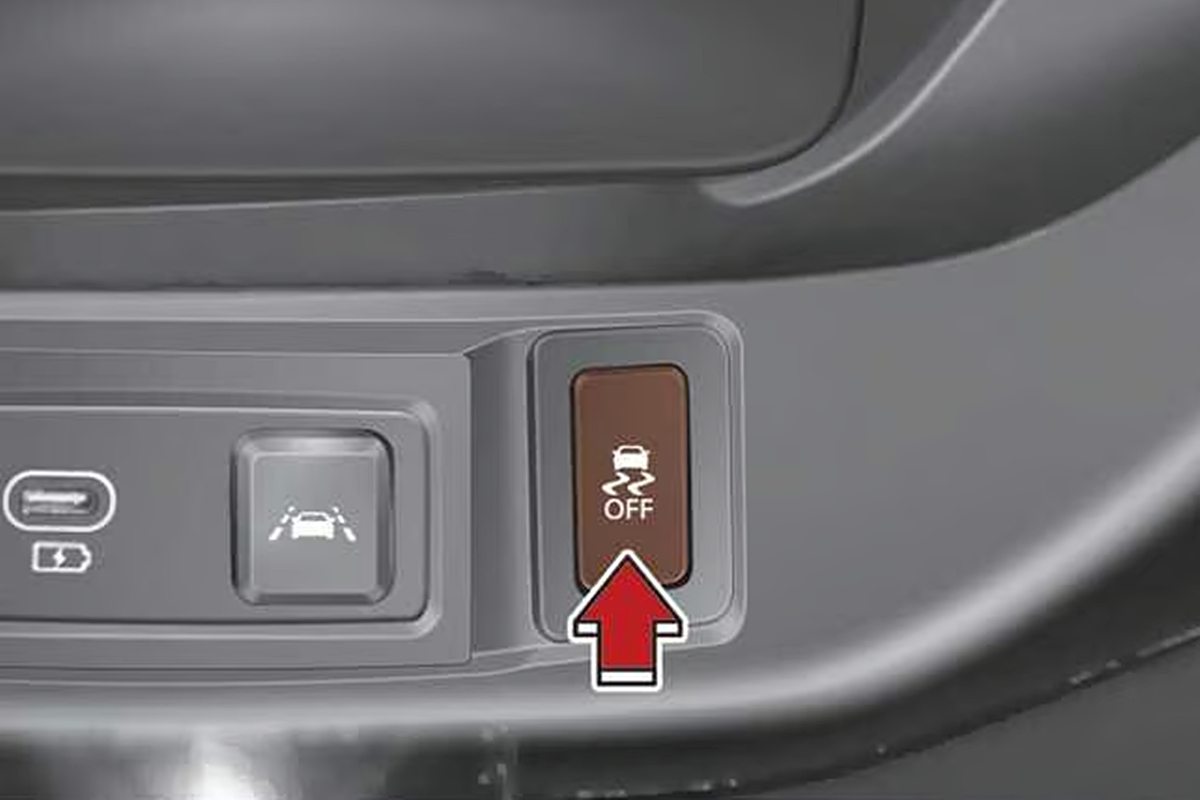 【引用:ヒョンデ】雪道や泥地で立ち往生した時に役立つのが、運転席左側にある横滑り防止装置(ESC)ボタンの「3秒以上の長押し」だ。通常は走行安定のため常時ONが基本だが、タイヤが空転している状況では出力抑制と自動制動が脱出の妨げになる。短押しは駆動力制御のみを解除する一方、長押しすると姿勢制御まで含め完全にシステムがオフとなり、空転する力を利用して雪や泥から抜け出せる。脱出後は必ず機能を再度オンに戻す必要がある。