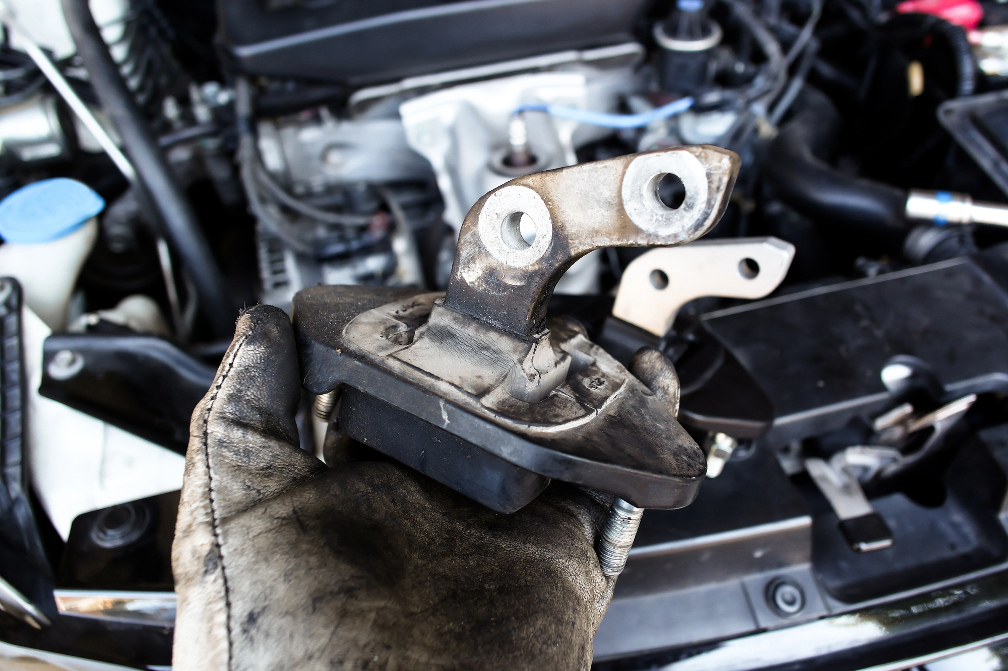 【引用:depositphotos】アイドリング時に発生するガタガタという振動音は、エンジンの回転そのものよりも振動を遮断する周辺部品の劣化に起因するケースが多い。代表例がエンジンマウントで、内部のゴムが硬化や亀裂を起こすと、本来吸収されるはずの微振動が車体側へ直接伝達される。特にシフトをDレンジに入れた瞬間に振動が増幅する場合、負荷変化に追従できないマウントの性能低下が疑われる。また補機ベルト系ではオートテンショナーの内部スプリングや支持ベアリングの摩耗により、一定周期で振動音が発生することがある。ステアリング系修理後であれば、パワーステアリングポンプ周辺のベルトラインとテンション状態を含めた総合確認が不可欠となる。