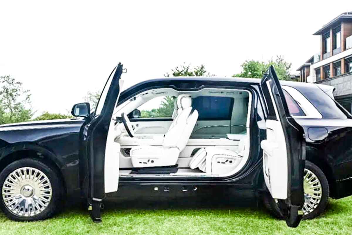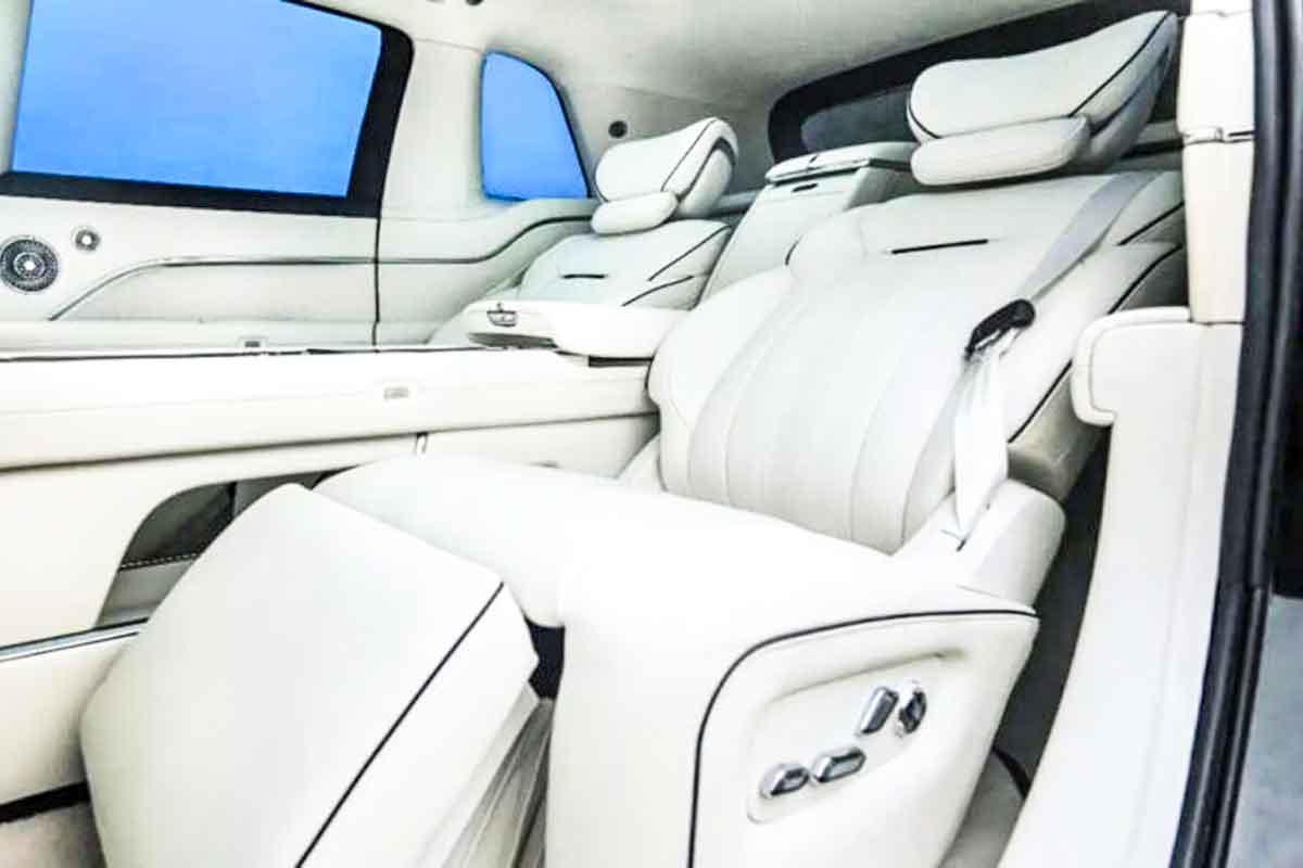 【引用:ドリーミー】エクステリアは巨大グリルや直線的なボディライン、コーチドアなど高級SUVの典型を踏襲する一方で、Bピラーを省いた大胆な構造を採用。安全性への懸念は残るが、クロームストリップでテールランプを連結する独自のデザインも備える。インテリアは3.2mのホイールベースを活かし、145度までリクライニング可能なキャプテンシート2脚を配した贅沢な後席空間を強調する。