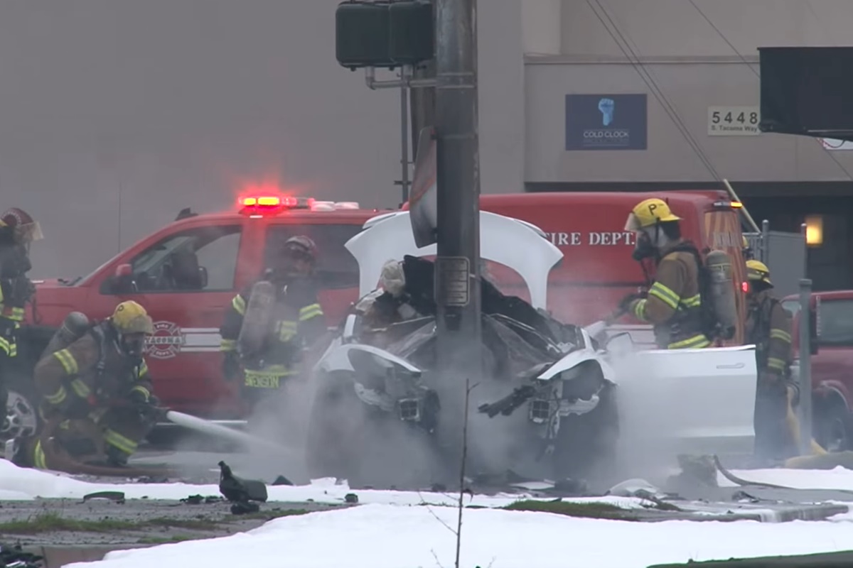 【引用:Youtubeチャンネル「KIRO 7 News」】訴状によれば、運転手ジェフリー・デニス氏は事故直前に車が「突然加速した」と述べている。衝突後に火災が発生したものの、周囲の目撃者は電動式ドアハンドルが機能せず車内へ到達できなかったと証言する。電源喪失時に作動しない構造上の弱点が指摘される中、目撃者はバットで窓を割ろうとしたが破壊も困難で、火勢が急速に広がるなか救助は事実上不可能だったという。最終的にウェンディ氏は現場で命を落とし、ジェフリー氏は脚部に重度の火傷を負った。
