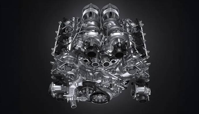 【引用:トヨタ】目標出力はシステム総合で約472kW、最大トルクは627lb-ftに設定された。ターボチャージャーはエンジンバンク内側に配置するホットVレイアウトを採用し、過給レスポンスと熱効率を両立する。燃料供給はポート噴射と直噴を組み合わせたD-4システムを採用し、走行状況に応じて最適な燃焼制御を行う。また潤滑方式にはドライサンプを採用し、低重心化と高回転域での安定した油圧確保を実現した。