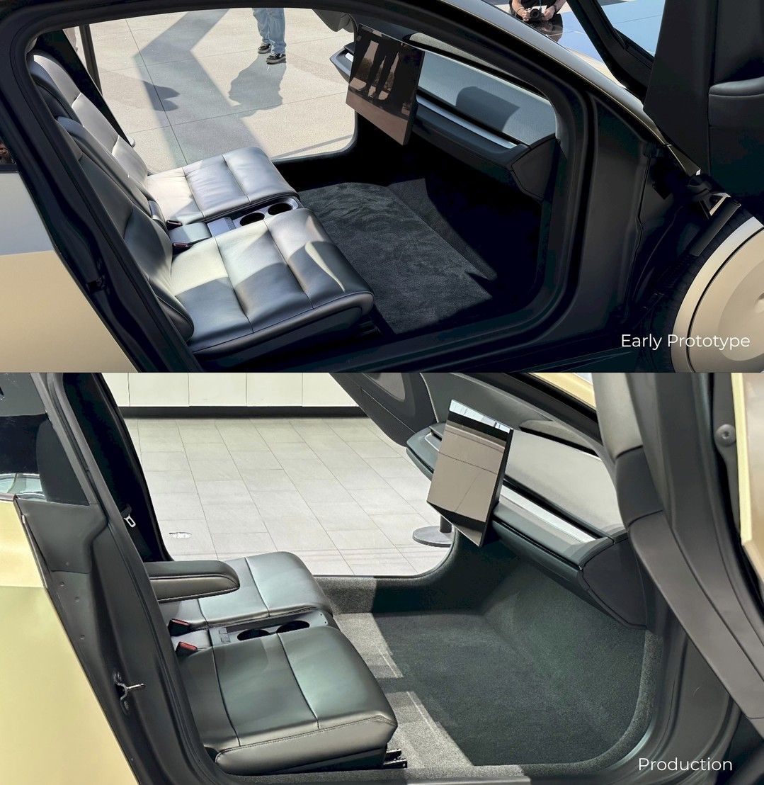 【引用:X@niccruzpatane】リアではテールゲート位置を高めることで空力性能の改善が図られ、バンパー形状もそれに合わせて自然に調整された。側面はフレームレスウインドウを維持しつつ開口部を拡大し、乗降性を高めるとともに電動ドアストラットを新採用したとされる。室内は全面刷新され、居住空間を拡大した上で、モデル3やモデルYに通じるシンプルなレイアウトとアンビエントライトを組み合わせ、ロボタクシー時代を見据えた新しい移動空間を提示している。
