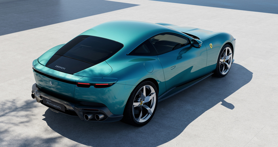【引用:フェラーリ】サイドビューは長いボンネットと滑らかに落ちるルーフラインが特徴で、クラシックGTのプロポーションを現代的に再解釈したものだ。リアには薄く水平に伸びるテールランプと洗練されたディフューザーが与えられ、高級感とスポーティさを高次元で両立している。