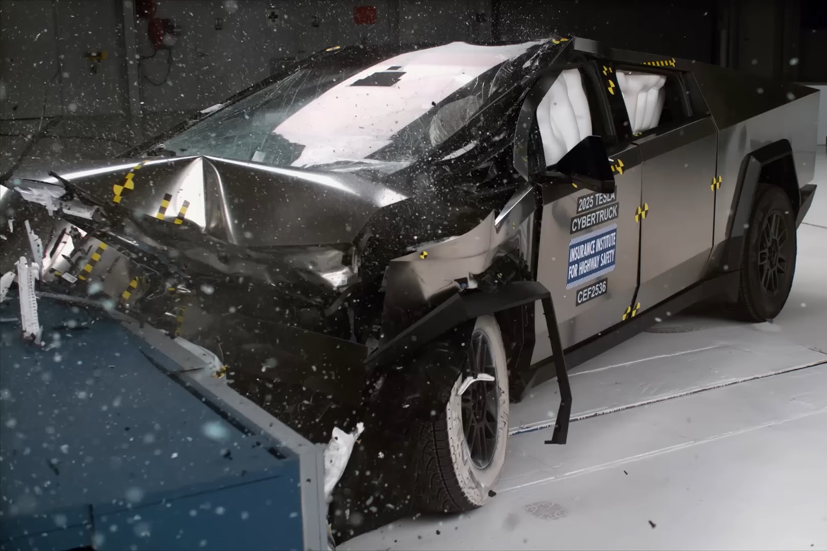 【引用:YouTubeチャンネル「IIHS」】米国の自動車市場でテスラ・サイバートラックは常に極端な評価の中心にあった。角ばった造形とステンレス外板という前例のない設計は、公開直後から賛否を二分し、従来型ピックアップと異なる構造が安全性で不利になるのではないかという疑念を招いてきた。衝突時のエネルギー吸収や歩行者への影響を巡る議論は発売前から続き、「本当に安全なのか」という問いがつきまとっていた。
