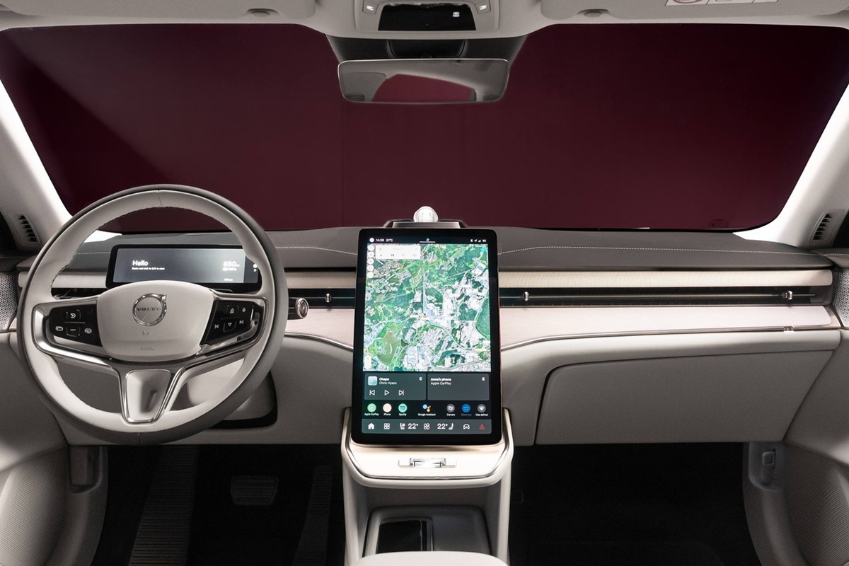 【引用:ボルボ】このモデルには最新の800V電気システムが搭載され、従来比25%の効率向上を達成した。DC急速充電では10〜80%を22分で完了でき、10分で約300kmの走行が可能となる。トリムはシングル、ツイン、ツインパフォーマンスの3種類で、最上級仕様は680馬力・870Nm、CATL製106kWhバッテリーを搭載し、最大700km(WLTP)を走行する。最高速度はボルボの安全理念に基づき時速180kmに制限されている。