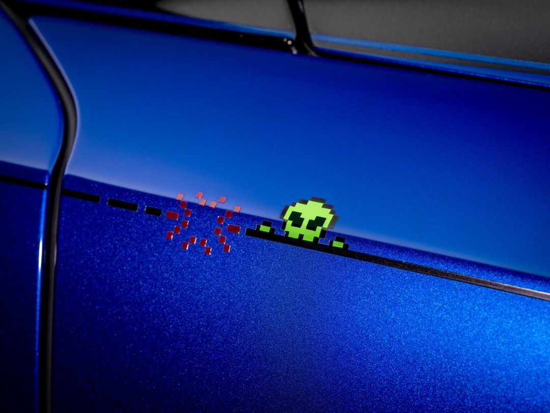 【引用:ロールス・ロイス】エクステリアはサラマンカブルーとクリスタルオーバーダイヤモンドブラックのツートンでまとめられ、アーケードゲーム特有のネオン調・メタリック感を再現した。サイドには、オーナーと共同開発した「チーキー・エイリアン」ビットマップを緑のコーチライン上に配置し、爆発グラフィックと合わせて初期ゲームの世界観を表現している。