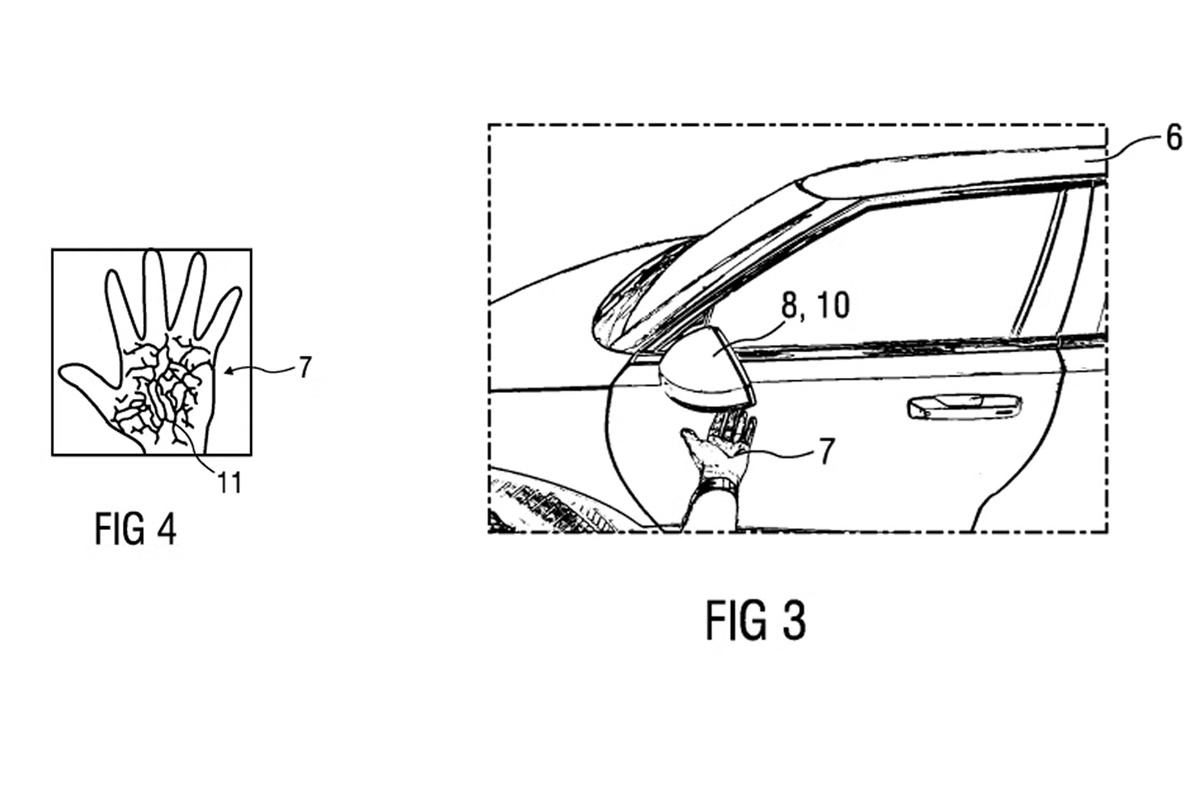 【引用:メルセデス・ベンツ】指紋でも顔でもない。メルセデス・ベンツが特許として示したのは、赤外線で手のひらの血管パターンを読み取り、車両のロックを解除するという異色の生体認証システムだ。Bピラーやサイドミラー下部に設置されたスキャナーに手のひらをかざすだけでドアが開く構想は、映画的でありながらも、特許文書では具体的な配置や構造まで踏み込んで描かれている。
