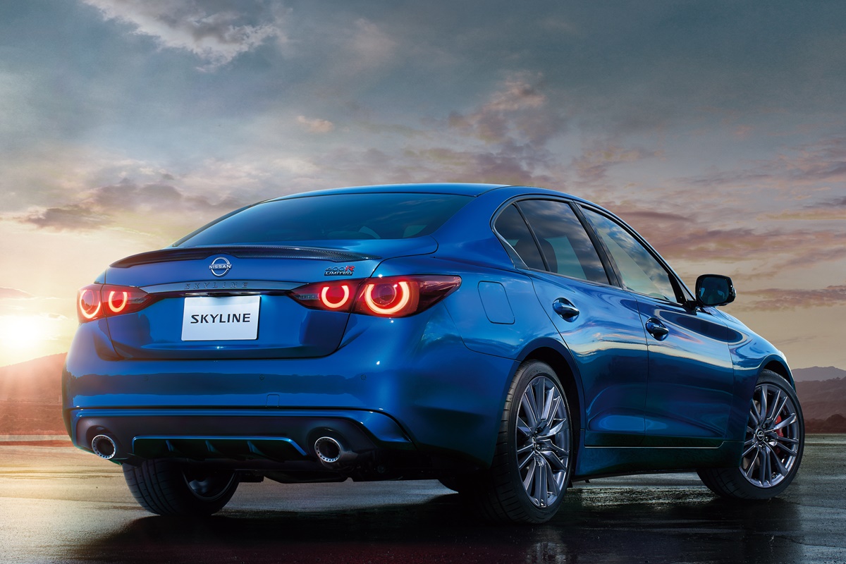 【引用:日産】外観は伝統的なスカイラインの流麗なシルエットを継承しつつ、カーボンファイバーミラーキャップや専用グリルパターンなど、限定仕様ならではの細部で差別化された。ドア下部の「400R Limited」エンブレムやレッドラインのアクセントがスポーティさを際立たせ、車内にはシリアルナンバー入りアルミプレートと専用レザーシートが採用された。価格は約693万5,500円で、標準400Rより約45万円高い。日産はこのモデルを「スカイラインセダンの終章」と位置づけ、ブランドの伝統を象徴する記念碑的存在としている。