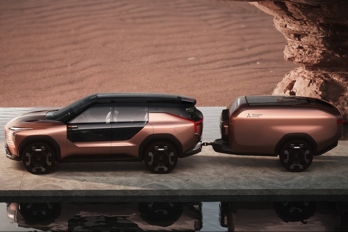 【引用:三菱自動車】パワートレインはプラグインハイブリッド(PHEV)を基盤とし、カーボンニュートラル燃料を使用する内燃機関と4基の電動モーターによるクワッドモーター4WDを採用。S-AWC技術と組み合わせることで、都市走行からオフロードまで安定かつスリリングな走行を可能にした。さらに同時公開されたグランピングトレーラーはSUVと統一デザインで設計され、内部にはベッド、キッチン、シャワーを完備。「動くホテルルーム」と称されるほど完成度が高い。