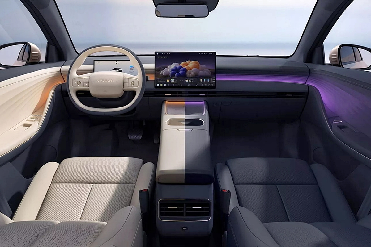 【引用:日産】デザイン面では電動セダンN7と共通する意匠を採用し、クローズドパネルやフルワイドライトバーによってEV的な先進感を前面に押し出す。ボディサイズは全長4,831mm、ホイールベース2,815mmと余裕があり、17インチまたは18インチホイールを選択可能だ。隠し式ドアハンドルや一体型充電ポートなど、細部まで空力とクリーンさを意識した設計が施されており、価格帯を考えれば異例とも言える完成度を備えている。